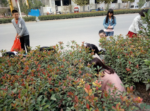 15:50分,活动准时开始。各部部长干事手提垃圾袋,衣装整齐,沿着尚德路开始了捡垃圾活动。活动刚开始时,同学们还有点拘束,但看到各部长积极主动的捡垃圾,很快都真诚的投入到活动中。18:30分左右,员工会负责的尚德路路段已焕然一新,大包小包的垃圾是同学们努力的结果,因为我们的加入让这座城市更加美丽!