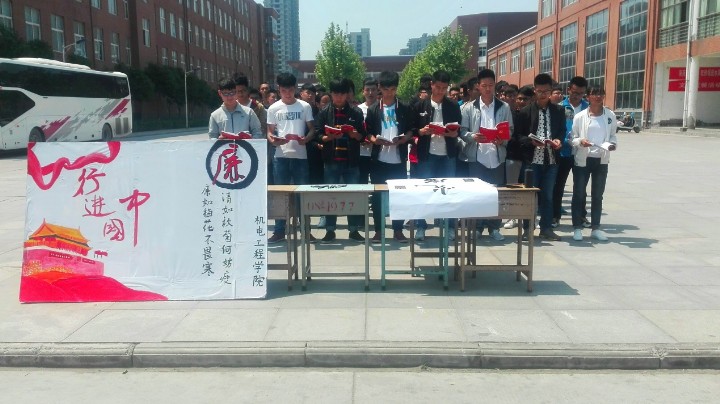 4月27日,以“廉洁交院”为主题的26期、27期yl7703永利集团官网入党积极分子“洒一字宣毫,书廉洁人生”活动在教学区餐厅广场火热进行。yl7703永利集团官网组织部部长和其他部门部长及组织部全部部员参加了本次活动。