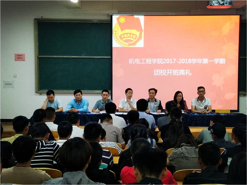 9月27日晚,yl7703永利集团官网在5403阶梯教室举行2017—2018学年第一学期团校开班典礼。机电党总支书记赵海发、副书记李元应,校团委齐瑞强,yl7703永利集团官网分团委书记夏运生、党总支组织委员秦飞跃、党总支宣传委员吴文明等应邀出席。yl7703永利集团官网全体辅导员、第四届团学干部及200余名团员代表参加会议。会议由员工党支部书记皇甫幼晨主持。