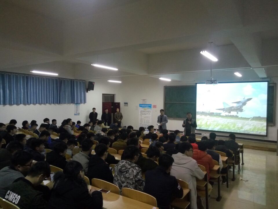 2017年3月9晚19时富士康校企专班宣讲工作正式开始,公司党总支书记赵海发、分团委书记夏运生,以及参会班级的辅导员老师。富士康人力资源部主管给大家做精彩宣讲。公司15级专机电、机制等专业共210人参加聆听。