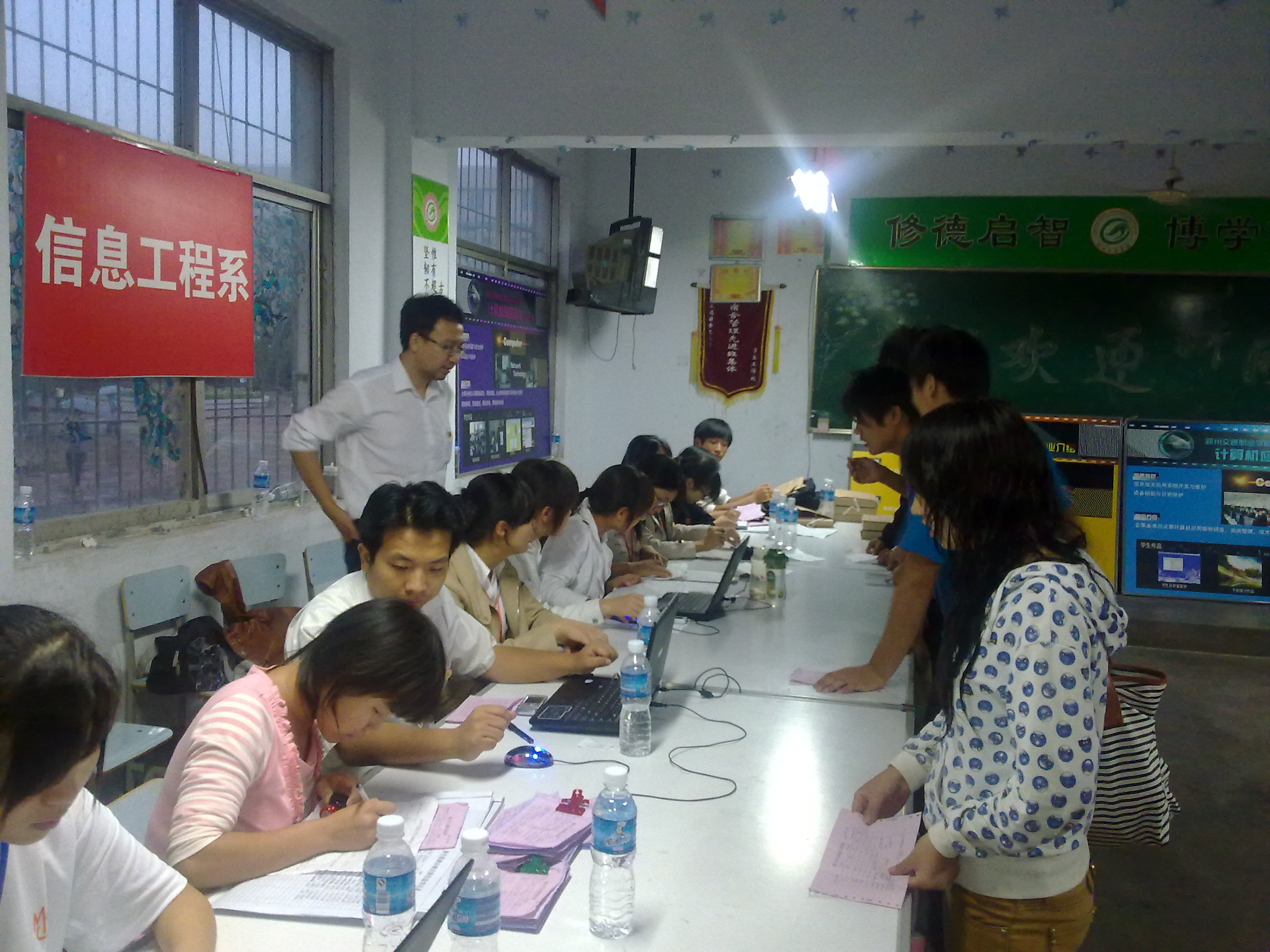 信息工程系教师和同学们迎接他们的到来,为他们排忧解难,为他们做好入学的注册和登记工作,使他们尽快融入信息工程系的大家庭,健康快乐的生活学习。
