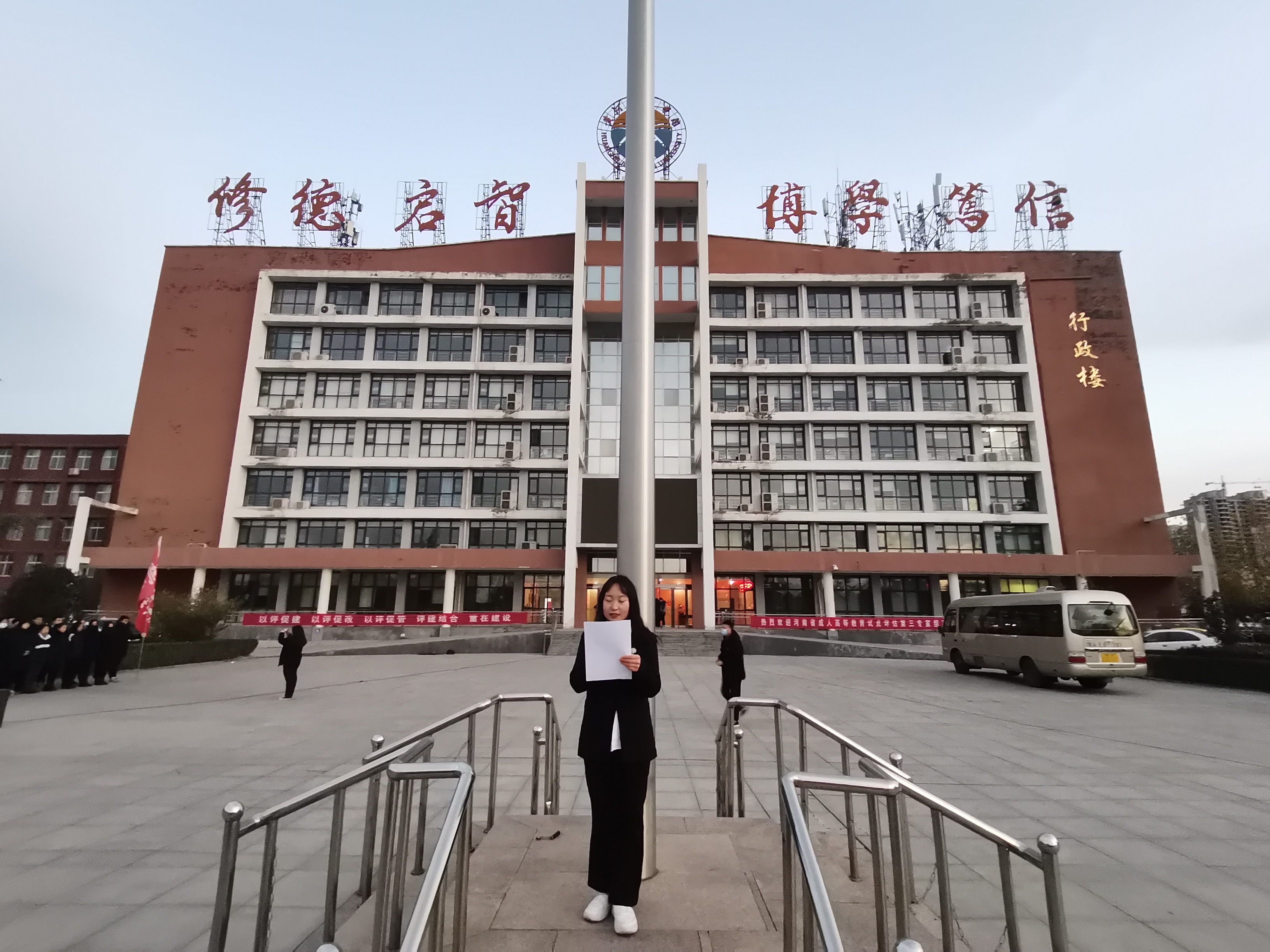 弘扬诚信,组织国旗下演讲。12月14日7时,yl7703永利集团官网在国旗广场举行诚信主题升旗仪式,员工代表20级本科机制5班刘梦瑶以“诚信考试,从我做起”为题进行演讲,“人生处处时考场,考场处处有考验,惟有以诚以信,才能交出无悔的答卷”,诚信是美德,诚信考试是对知识的尊重,并且作弊要承担严重的后果。最后她呼吁每位同学认真复习,积极备考,严守考试纪律,党员、团员和员工干部做出表率,同学们之间相互督促,弘扬正气,展现机电学子良好的道德风尚。